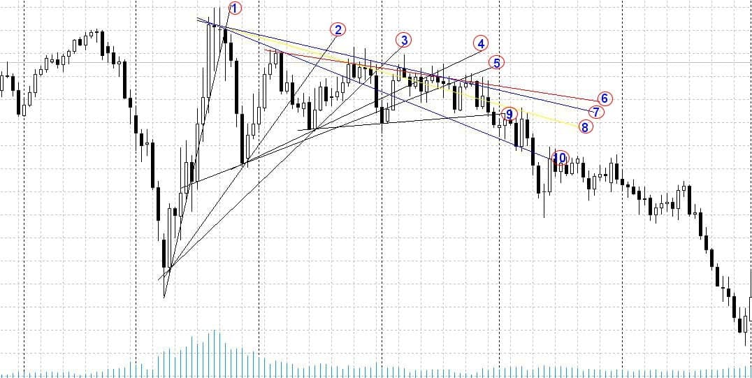 Пример 3: На картинке изображено 10 линий тренда. Какие из них проведены правильно?