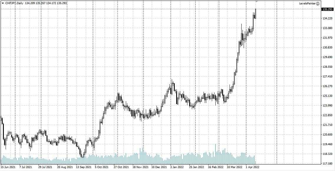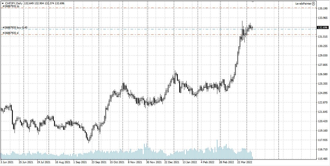 Пример 1: Валютная пара CHFJPY. Прибыльная сделка.